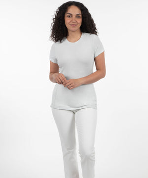 Make every move, every workout, every day more comfortable in our Grace short-sleeve knit tee shirt. The crewneck style is easy-care, lightweight performance fabric with built-in stretch that moves with you. Coollite™ technology wicks moisture away from your skin 20% faster and creates an instant cooling sensation. UPF 30+ protects against the sun's harmful rays.