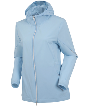 An easy choice for your active life, our Amelia jacket is ideal for combatting wind and water. The lightweight, zip-front design is constructed of ripstop poly and has a WxTech™ coating that provides wind-resistance and water-resistant benefits, keeping you dry and comfortable whether you're on the golf course or out for a run. It's hooded with a roll and snap-down feature to keep it tidy when not in use. The stretch side and back panels are highly flexible for extra mobility, with zippered hand pockets and a back waist adjustment.
