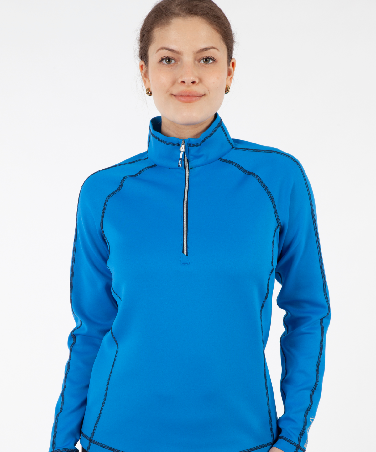I have four of these tops all in different colors and it is my go to top especially as the weather cools down. Our golf team has also bought this in the past. Well-made, flattering, true to size and durable. I do wish Sunice would make the women’s line as stylish as the men’s . I find that the men’s line has more attractive detailing, even in this shirt.
