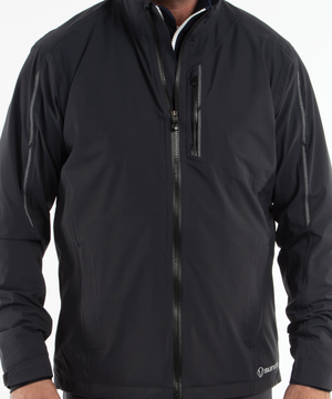 Wet, windy weather meets its match in the Eros Zephal Max rain jacket. Innovative fabric combines with performance features to guarantee you'll keep moving despite the rain. The two-layer construction is designed with waterproofing to keep you dry for up to 6 hours of moderate to steady rain, with built-in four-way stretch that moves with you in any weather. A bottom hem and Pro Trim Waist cinching system helps keep warmth in and moisture out. Full zip-front design has waterproof zippers, a welded chinguard, inside wind flap and an in-pocket ball cleaner. Lycra cuffs stay secure during activity. 3-year waterproof guarantee.