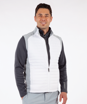 This vest is the best. I am a year-round golfer in the Mid-Atlantic and wear the vest over a long sleeve polo, often adding another layer on top, either a jacket or pullover. This vest is light, warm, properly fitted and does not restrict my movement in any way. After losing my favorite JLindberg vest I tried products from Peter Millar and Zero Restrictions and found Sunice to be THE BEST VEST.