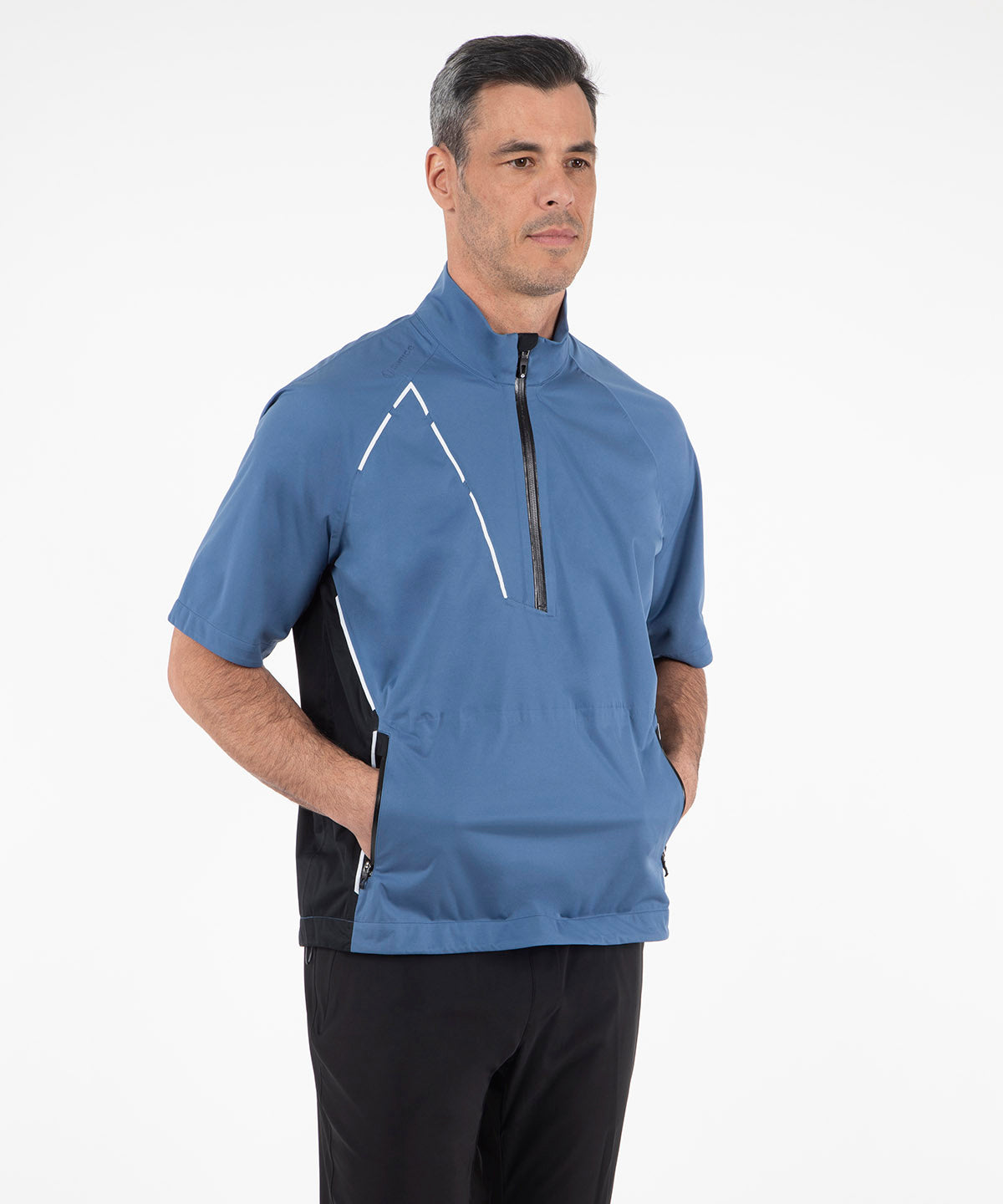 Here's the short-sleeve, half-zip layer you can count on in the wind and rain. In fact, the Sullivan Zephal™ FlexTech Pullover is so flexible with four-way stretch fibers, you'll probably reach for it on blue sky days too. It is highly breathable, waterproof and ultra lightweight with excellent stretch recovery. The laminated stretch woven shell features a RepelTX™ finish to improve breathability and water repellency. Laser-cut zippered pocket. 3-year waterproof guarantee.