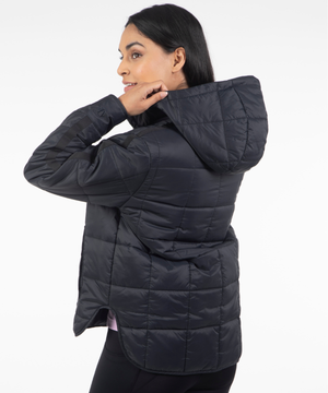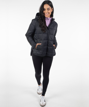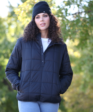 Warmth meets minimal design in the Emilie Quilted Hooded Pullover — a modern, ultra-lightweight layer built for three-season wear. This pullover combines the ease of a hoodie with the performance of technical outerwear, featuring a quilted silhouette, extended snap placket, and a relaxed fit that layers effortlessly over base layers or knits.